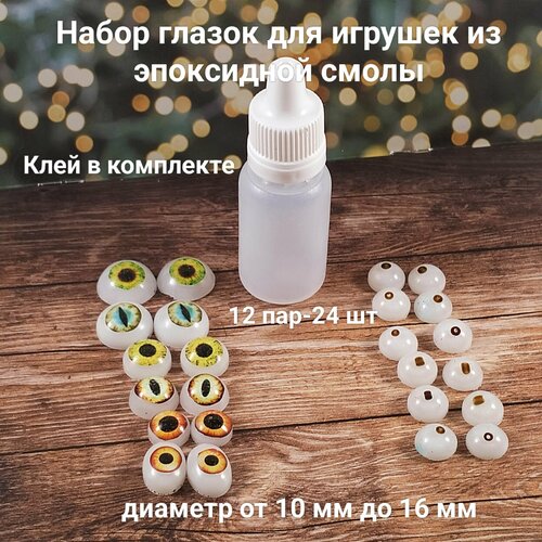 Глазки для рукоделия, 10-16мм, эпоксидный набор 24 штуки