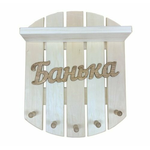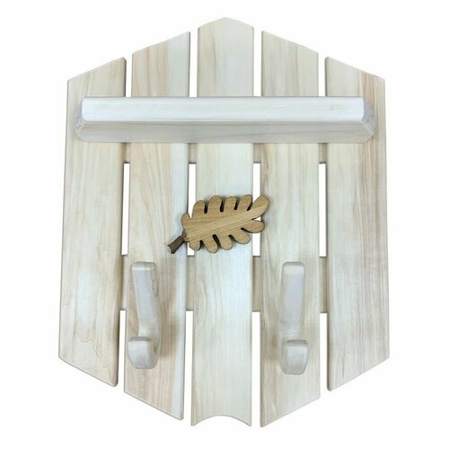 Полка деревянная Листочек для бани и сауны 2 крючка из липы