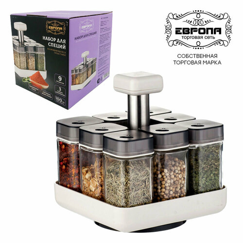 Набор для специй 9 пр Европа вращающаяся подставка стекло/нержавеющая сталь/пластик tr-ksr-sq008