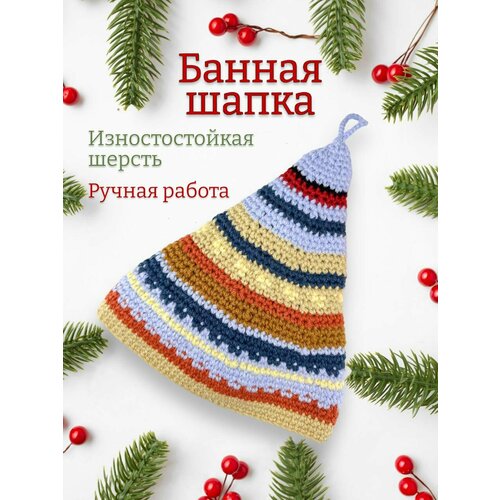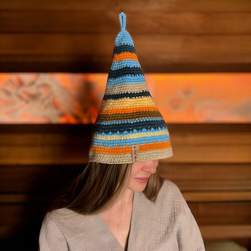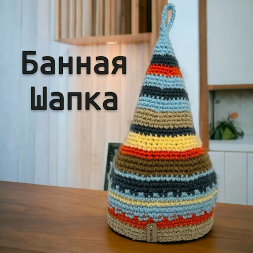 Шапка вязаная для бани ручной работы цветная