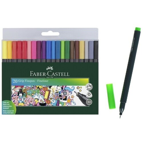 Набор ручек капиллярных 20 цветов Faber-Castell GRIP 0.4 мм, в пластиковом футляре
