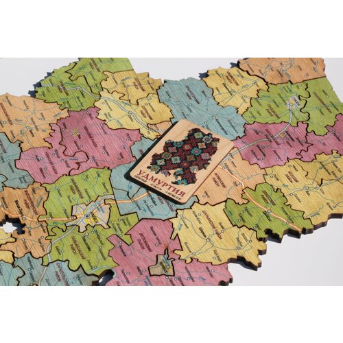 Деревянная карта пазл Удмуртской Республики с городами