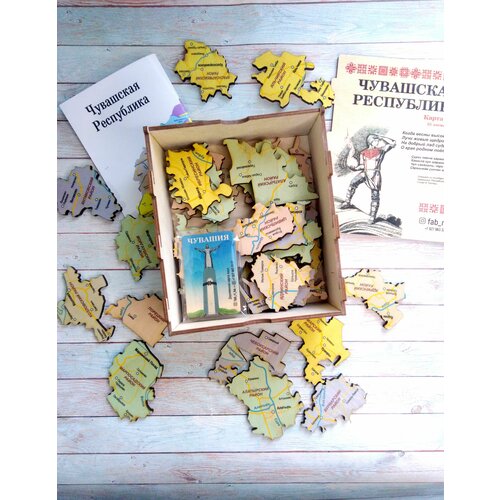 Деревянная карта пазл Чувашской республики, настольная игра