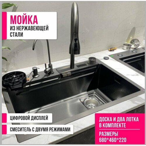 Кухонная мойка из нержавеющей стали с дисплеем Летящий дождь, 68х46 см