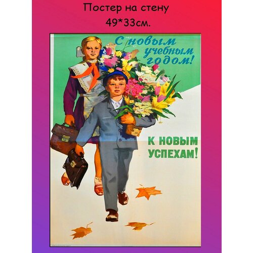 Постер, плакат на стену "Первый раз в 1 класс, День знаний, Снова в школу, 1 Сентября" 49х33 см (A3+)