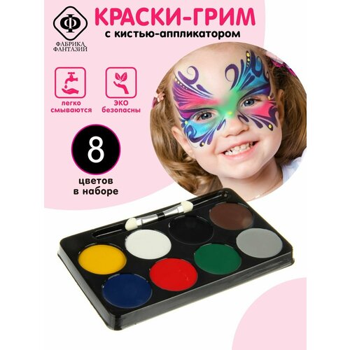 Грим театральный для лица и тела, палитра 8 цветов, Фабрика Фантазий / Аквагрим для детей, набор краски для грима с кистью-аппликатором / Halloween, хэлоуин