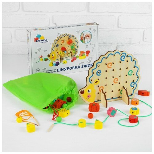 Шнуровка "Ёжик с поклажей", 82 элемента, 2 шнурка — 80 см, ёжик: 22 × 18,5 см, бусины: 4 × 2,5 см; 1,2 × 1,2 см