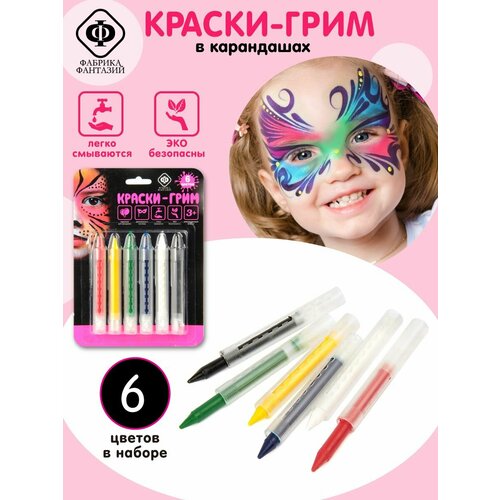 Грим театральный для лица и тела, Фабрика Фантазий / Карандаши для грима, 6 шт, краски Аквагрим для детей / Halloween, хэлоуин