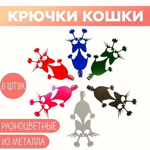 Набор крючков (6 шт) для ванной комнаты на липучке. Держатель для полотенец, вешалка. Разные цвета, металлический (8,7см х 2,2см х 14,6см)