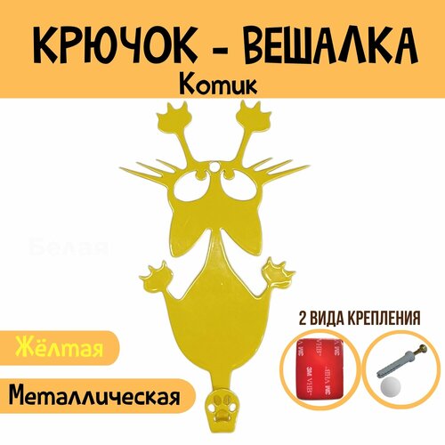 Крючок для ванной комнаты самоклеющийся жёлтый. Держатель для полотенец. Вешалка для ванны, кухни на липучке (8,7см х 2,2см х 14,6см)