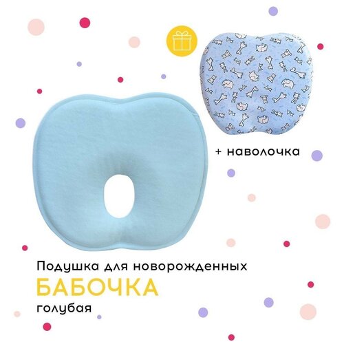 Подушка ортопедическая для новорожденных « Бабочка» (цвет голубой)