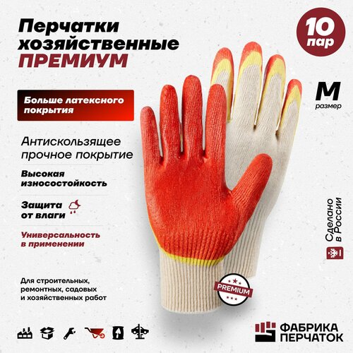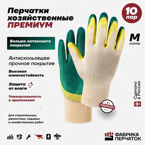 Рабочие хозяйственные перчатки Фабрика перчаток из хб материала с прорезиненным ПВХ покрытием на ладонях и резинкой для надежной защиты рук, набор 20 пар
