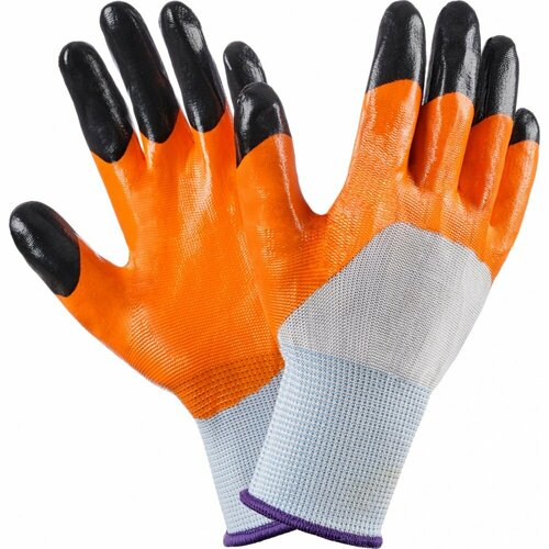 Хозяйственные перчатки "Фабрика перчаток" из прочного нейлона с нитриловым покрытием и манжетами на резинке для защиты рук во время работы в саду и огороде, 12 пар