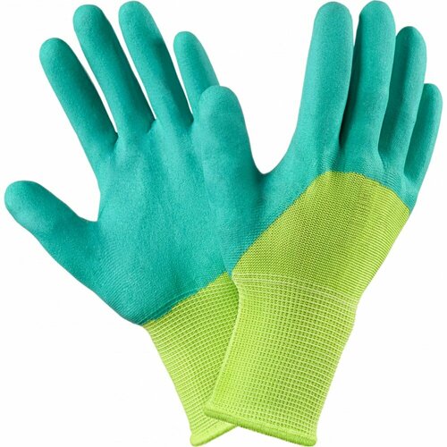 Хозяйственные перчатки "Фабрика перчаток" из прочного нейлона с нитриловым покрытием и манжетами на резинке для защиты рук во время работы в саду и огороде, 5 пар