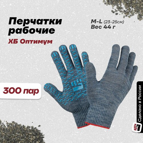 Рабочие хозяйственные перчатки Фабрика перчаток из хб материала с прорезиненным ПВХ покрытием на ладонях и резинкой для надежной защиты рук, набор 300 пар