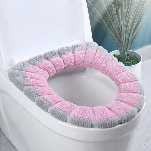 Мягкое сиденье-чехол на стульчак унитаза, серо-розовый