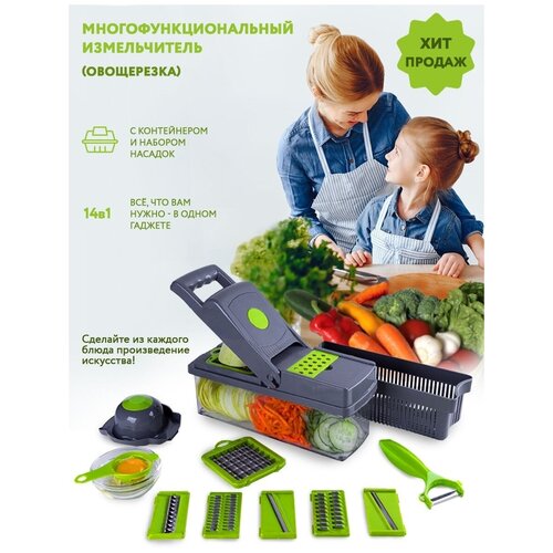 Многофункциональный измельчитель (овощерезка) 14в1 (серый/зелёный)