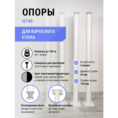 Ножки для стола телескопические (мебельные опоры) с регулировкой по высоте от 564 мм до 810 мм. Цвет. Комплект 4 шт.
