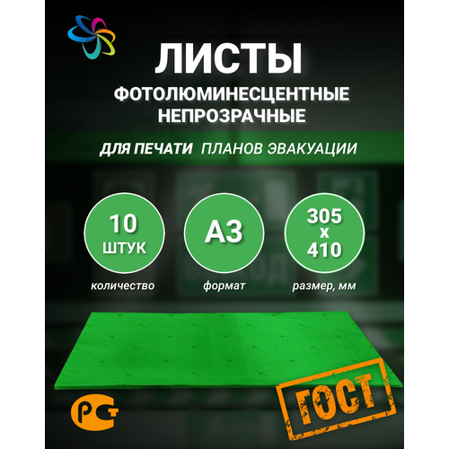 Фотолюминесцентные листы А3 по ГОСТ непрозрачные, 10шт. (305*410)