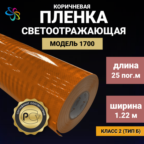 Светоотражающая самоклеящаяся пленка 1700 коричневая в рулоне 1,22 м x 25 м для рекламных вывесок, указателей