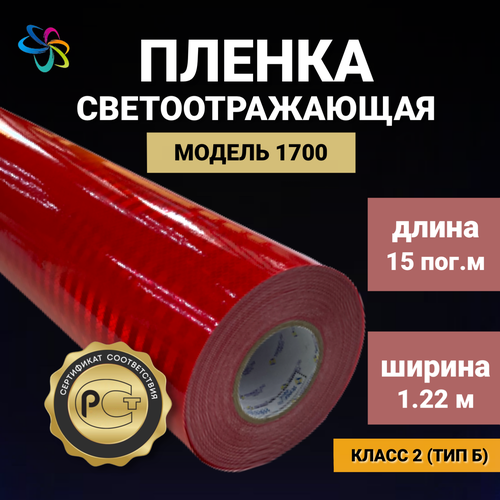 Светоотражающая самоклеящаяся пленка 1700 красная в рулоне 1,22 м x 15 м для рекламных вывесок, указателей