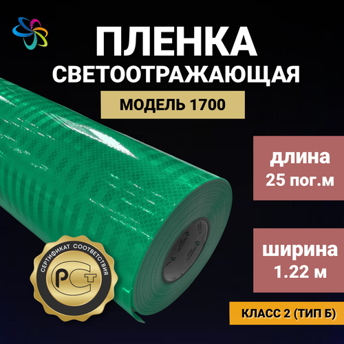Светоотражающая самоклеящаяся пленка 1700 зеленая в рулоне 1,22 м x 25 м для рекламных вывесок, указателей