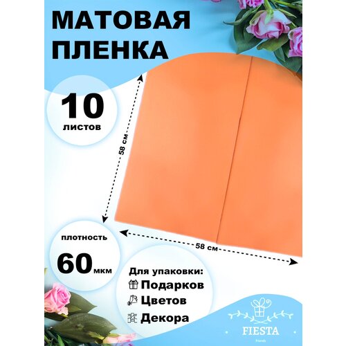 Пленка матовая 58см х 58см 60мкм 10 листов, персик