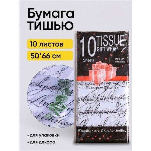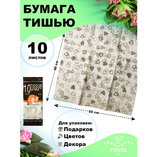 Бумага тишью 50 х 70 см, 10 листов, сердечки