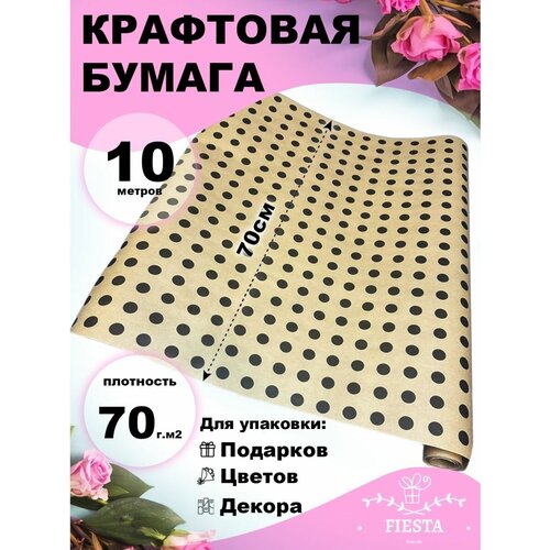 Упаковочная бумага крафт 70г/м2, 70см x 10м, Горох