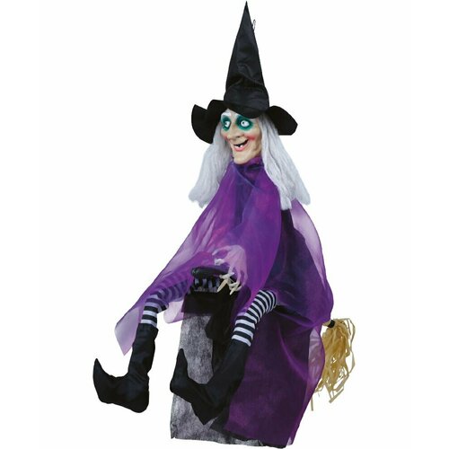 Декорация на хэллоуин: Подвесная кукла с эффектами "Ведьма на метле" (18131)