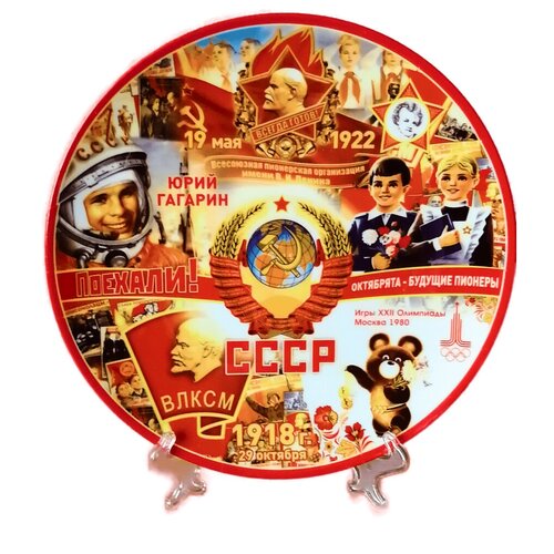 Тарелка сувенирная СССР, фарфор, 20 см , с подвеской и подставкой, в коробочке. Патентованный дизайн