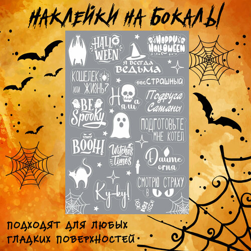 Наклейки на Хэллоуин для бокала, наклейки для Хэллоуин, белые