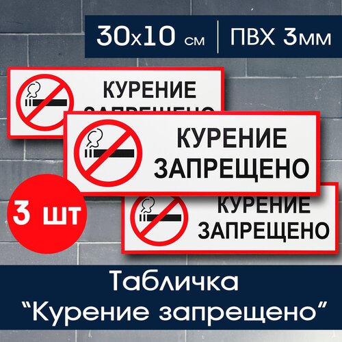 Курение запрещено табличка 30х10 см для подъезда, офиса, ТЦ, ресторана, 3 шт. в наборе