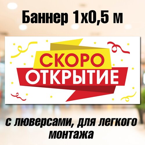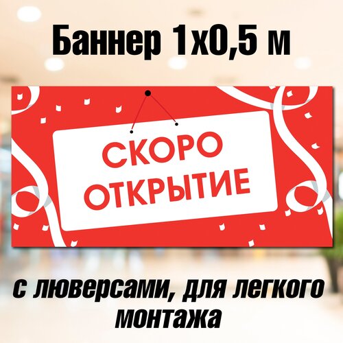 Баннер скоро открытие 50 см х 100 см, с люверсами