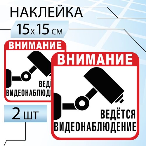 Ведется видеонаблюдение наклейка, комплект из 2х штук, квадратная белая