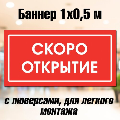 Баннер скоро открытие 50 см х 100 см, с люверсами, вывеска