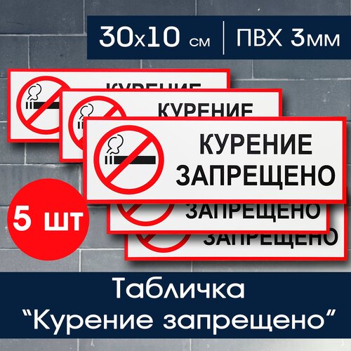Курение запрещено табличка 30х10 см для подъезда, офиса, ТЦ, ресторана, 5 шт. в наборе