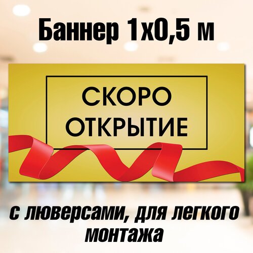 Баннер скоро открытие 50 см х 100 см, с люверсами, вывеска, постер