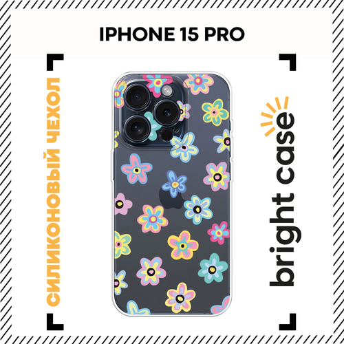 Чехол на Apple iPhone 15 Pro / Айфон 15 Про с принтом Летние цветочки, прозрачный