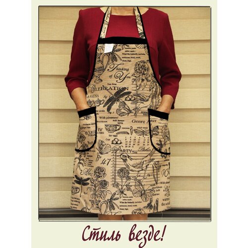 Фартук кухонный женский большие размеры хлопок "Бежевый кофе с черным" / Фирма ЗигЗаг