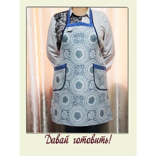 Фартук кухонный женский большие размеры хлопок "Орнамент с синим" / Фирма ЗигЗаг