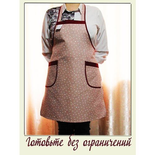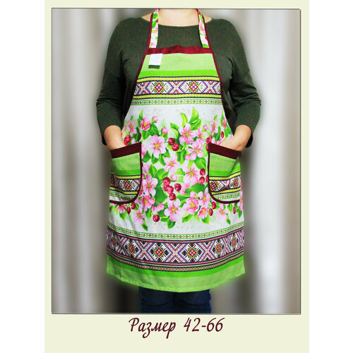 Фартук кухонный женский большие размеры хлопок "Вишня с бордо" / Фирма ЗигЗаг