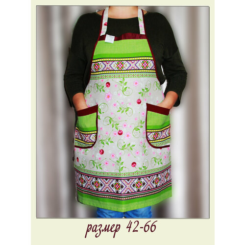 Фартук кухонный женский большие размеры хлопок "Зеленая хохлома" / Фирма ЗигЗаг