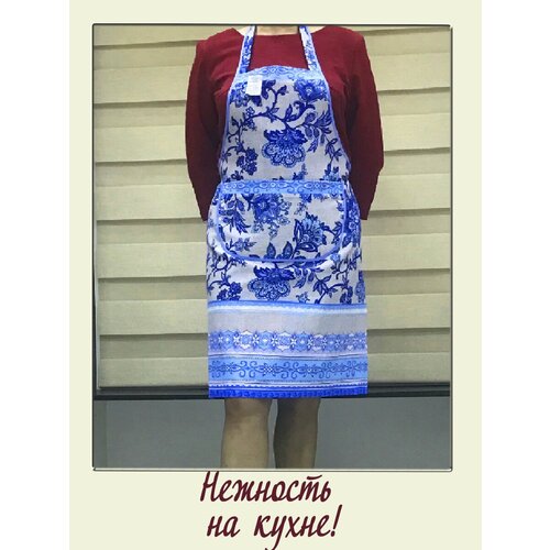 Фартук кухонный женский большие размеры хлопок "Гжель" / Фирма ЗигЗаг