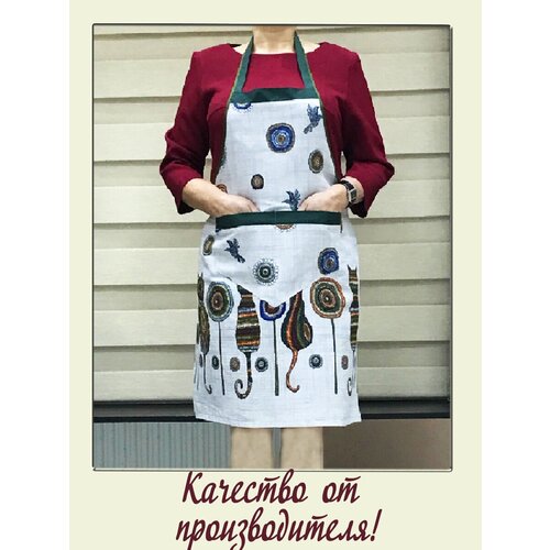 Фартук кухонный женский большие размеры хлопок "Котики с зеленым" / Фирма ЗигЗаг