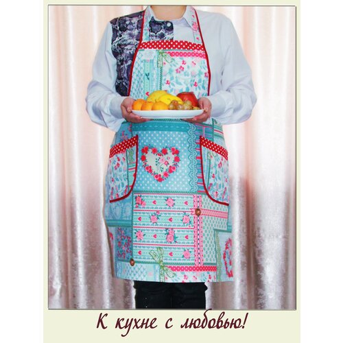 Фартук кухонный женский большие размеры хлопок "Сердце из роз" / Фирма ЗигЗаг