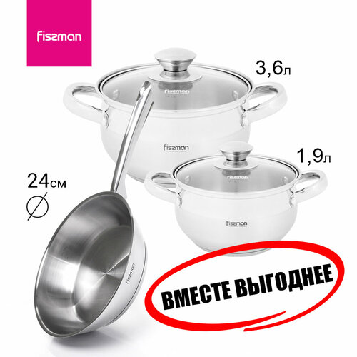 Набор кастрюль 3,6 и 1,9 и сковорода 24 см из нержавеющей стали