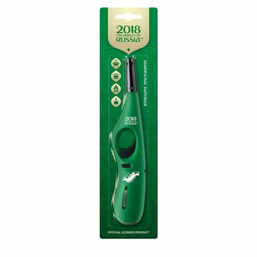 Бытовая зажигалка Flame Club B-01 FIFA World Cup 2018, в блистере, с крючком, многоразовая, зелёная