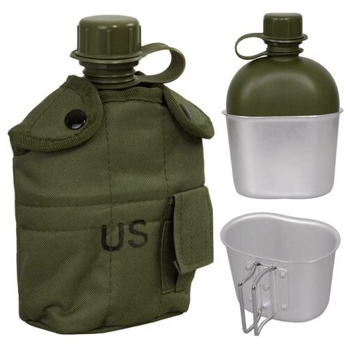 Фляга армейская с алюминиевым котелком хаки