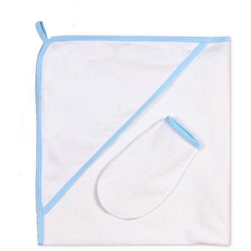Flyzay детское полотенце с уголком для новорожденных (полотенце с капюшоном) + рукавичка, белый голубой